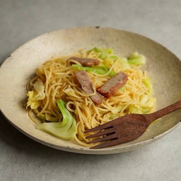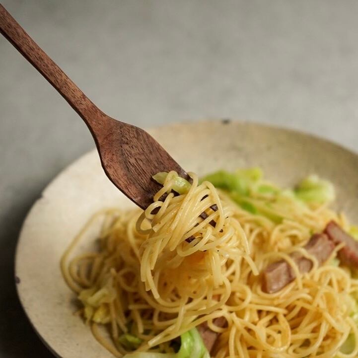 パスタなどの麺類をくるくる巻き取れる長さを保ちつつ、お肉や野菜などの固形の食べものも刺せるフォークです。