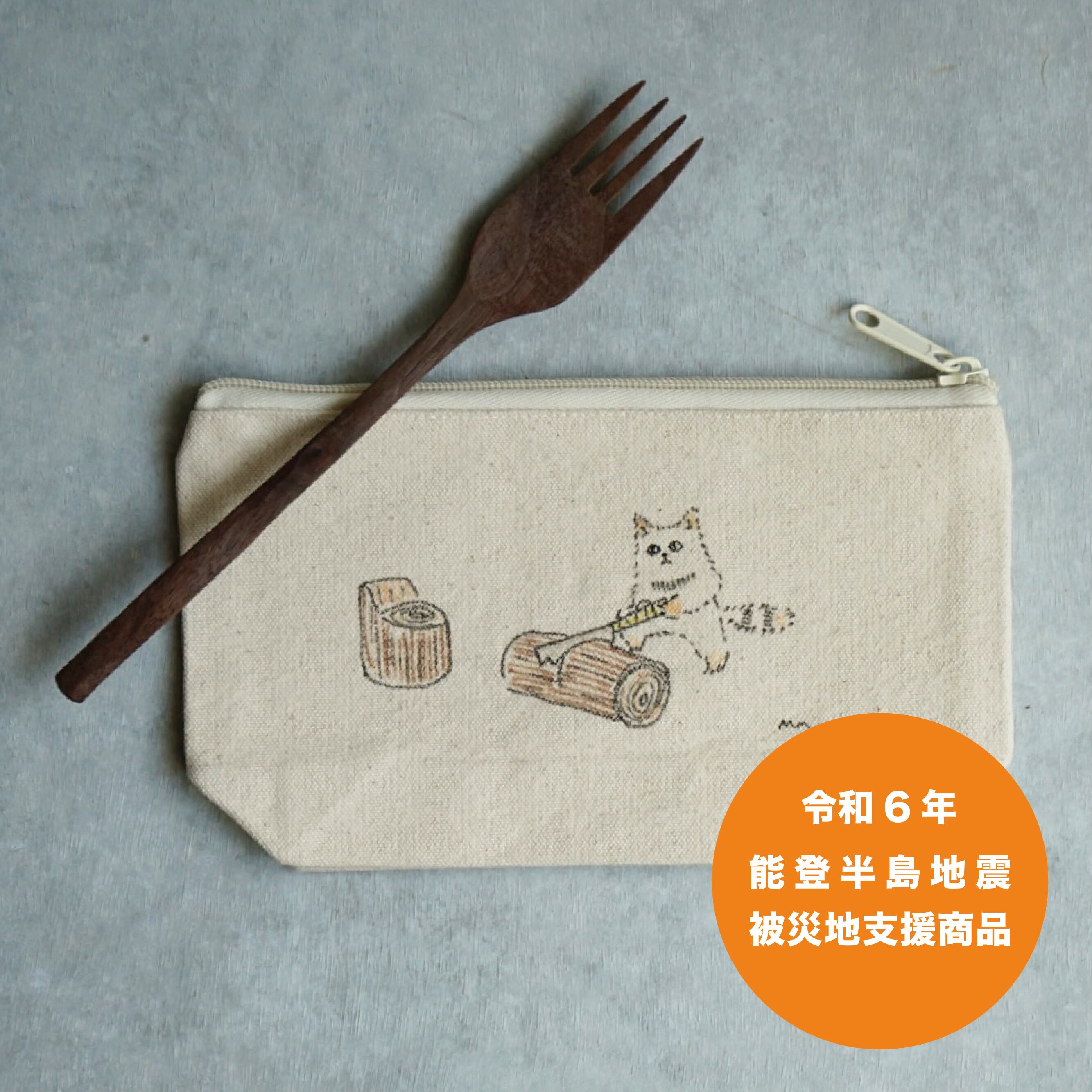 【むくフクロ】むくこ巾着+フォーク(ウォルナット)